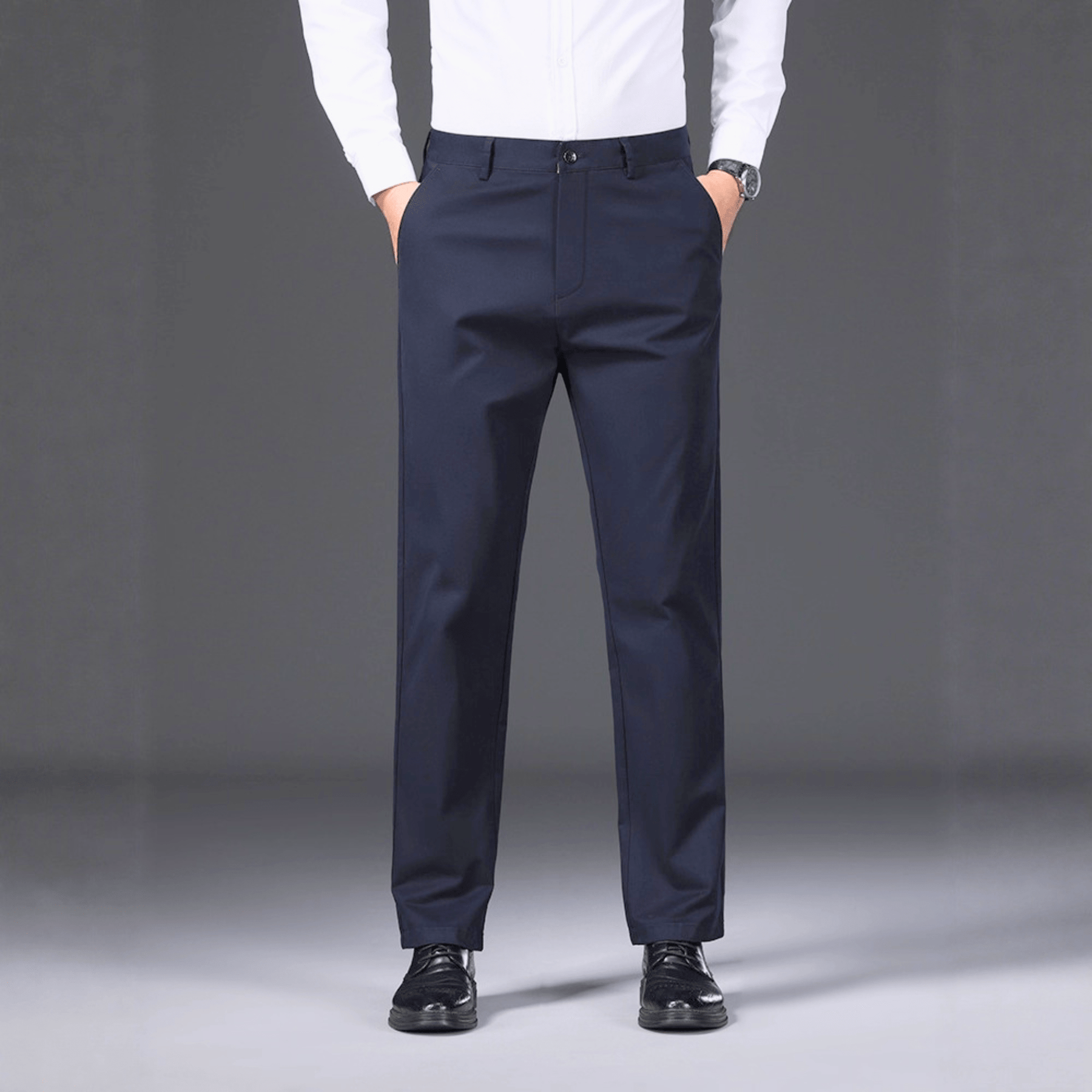 Le tissu à base de coton repose agréablement sur la peau tout au long de la journée. Il maintient une sensation équilibrée lors d’un port prolongé, que vous soyez assis, en marche ou debout.